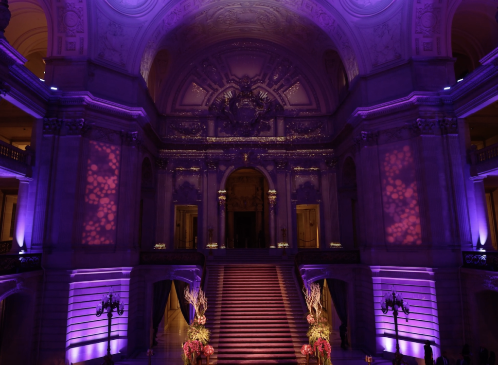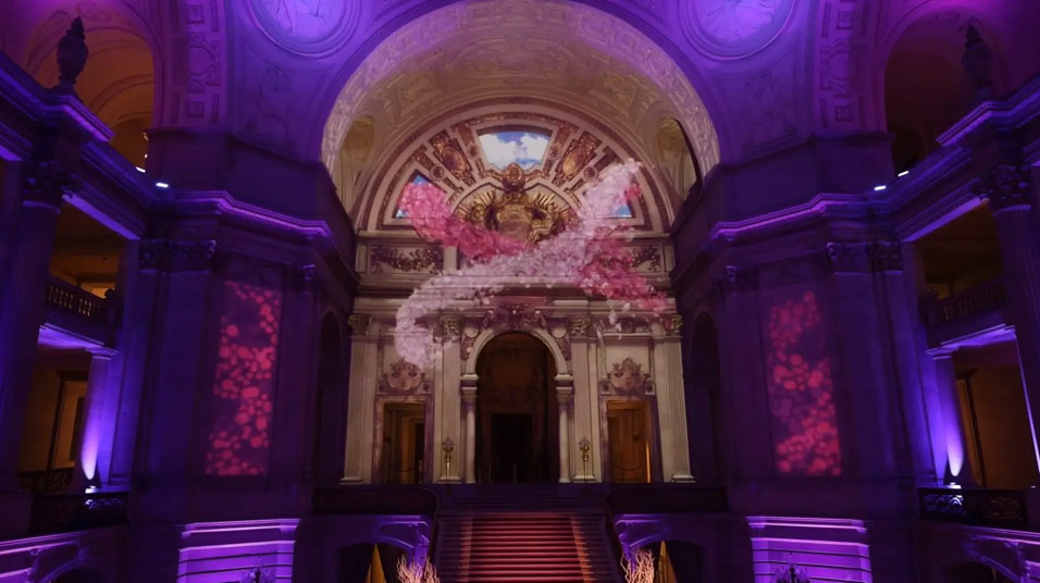 The Dignity Health Foundation reached out to A3 Visual in hopes of creating an extravagant projection mapping spectacle for their fundraising event. The HumanKindness Gala aimed to raise money and awareness for major social and health issues including human trafficking, health equity, concussion education, and more. Our challenge was to transform San Francisco’s historic City Hall with projections that highlighted the main show, presentation, and auction whilst embracing the architecture of the venue.