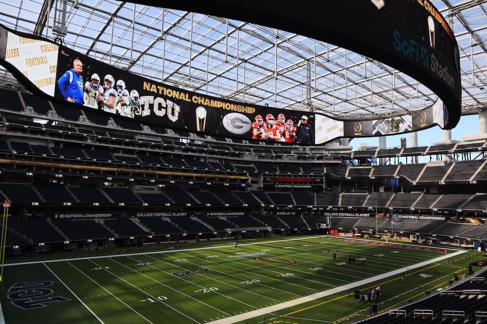 With a minimum seating capacity of 70,000—and expandable for up to 100,240—SoFi Stadium is one of the largest sporting venues in the country. The College Football Playoff Game is televised around the world, with millions more tuning in to watch the game. This year's game broke records across the board, including the largest margin victory in a title game as well as the largest margin win in any bowl game. Georgia finished out their 2022 season undefeated 15-0, capitalizing on their 2022 College Football Playoff Championship victory just last year. Georgia narrowly secured the playoff spot after defeating Ohio State 42-41 just over a week prior to the Championship game.